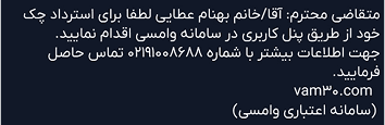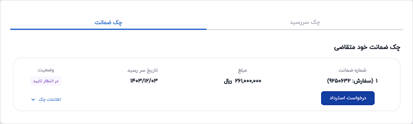 2- در مرحله دوم با ورود به پنل کاربری خود و قسمت اقساط میتوانید برای چکهای خود درخواست استرداد ثبت کنید.